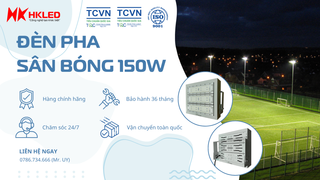 Khi lựa chọn đèn LED cho sân bóng, các tiêu chí như độ sáng, độ bền, an toàn và tiết kiệm luôn được đặt lên hàng đầu. Sản phẩm 150W của HKLED mang lại nhiều lợi thế vượt trội:Tại Đây?