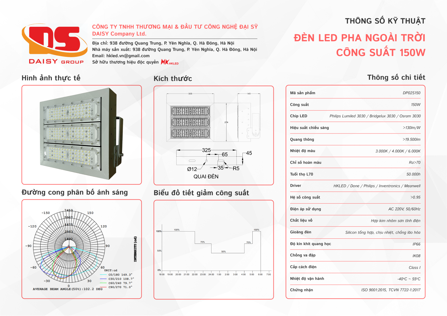 III. Thông số kỹ thuật bóng đèn LED sân bóng 150W (HKLED)