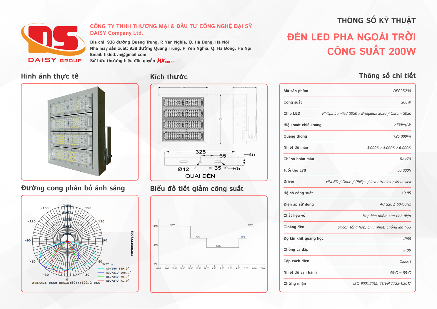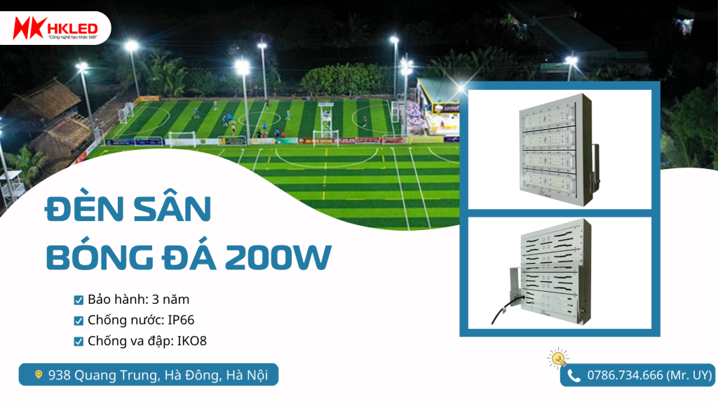 Đèn LED sân bóng 200W chính hãng HKLED: