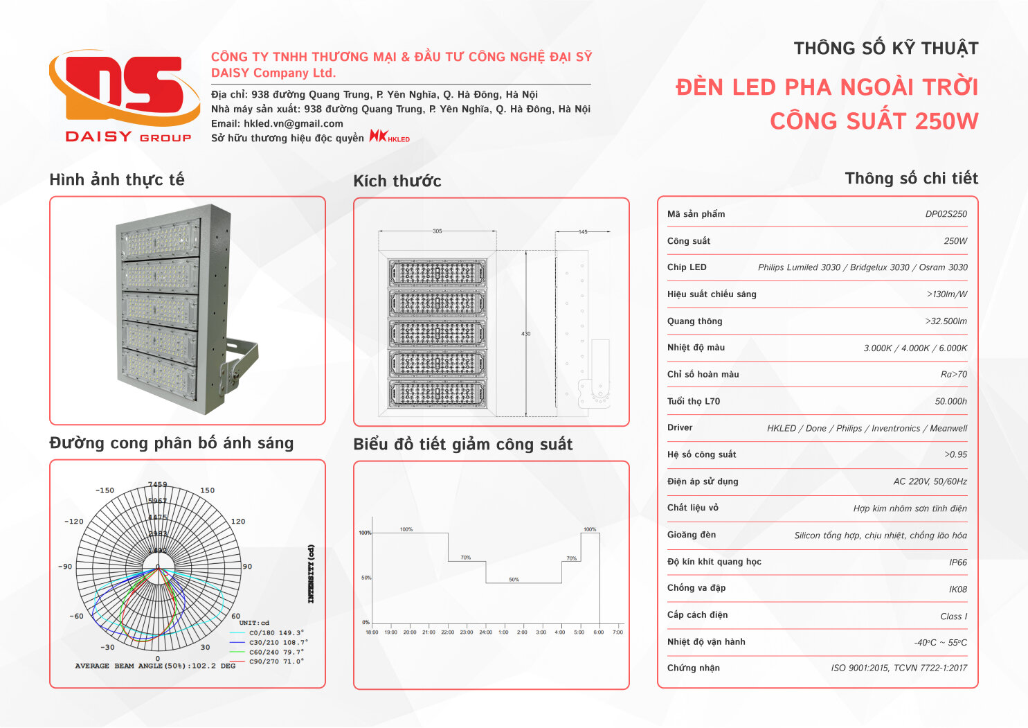 IV. Thông số kỹ thuật cơ bản đèn pha sân bóng 250W HKLED