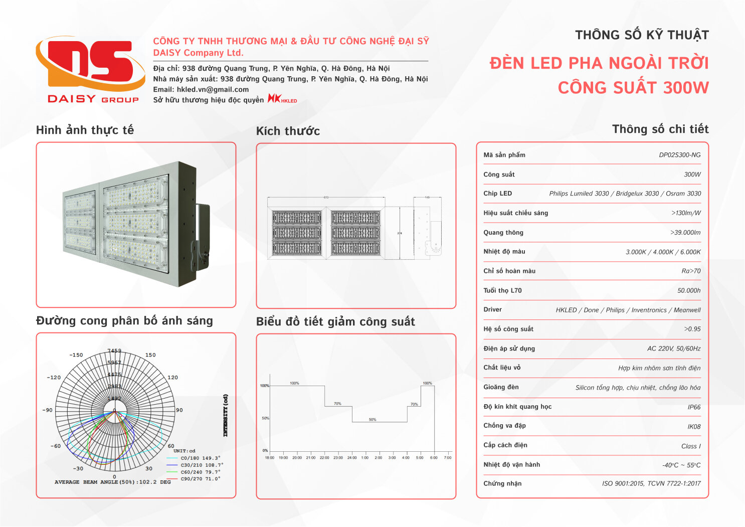 IV. Thông số kỹ thuật đèn pha sân bóng 300W của HKLED